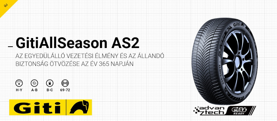 A Giti GitiAllSeason AS2 egy teljesen új, négyévszakos keverék, amelyet kifejezetten az egyedülálló európai útviszonyokra terveztek. Megőrzi tapadását és rugalmasságát alacsony hőmérsékleten, miközben biztosítja a szükséges merevséget és stabilitást a forró nyári hónapokban.