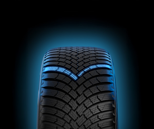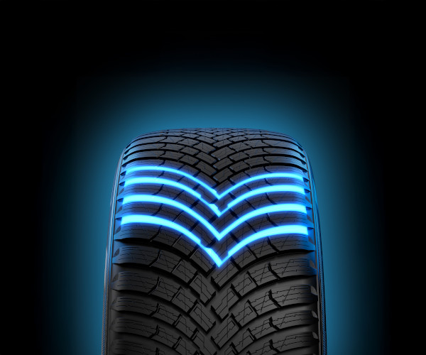 A széles barázdák és a megnövelt hézagarány kiváló nedves, aquaplaning és havas teljesítményt garantálnak.